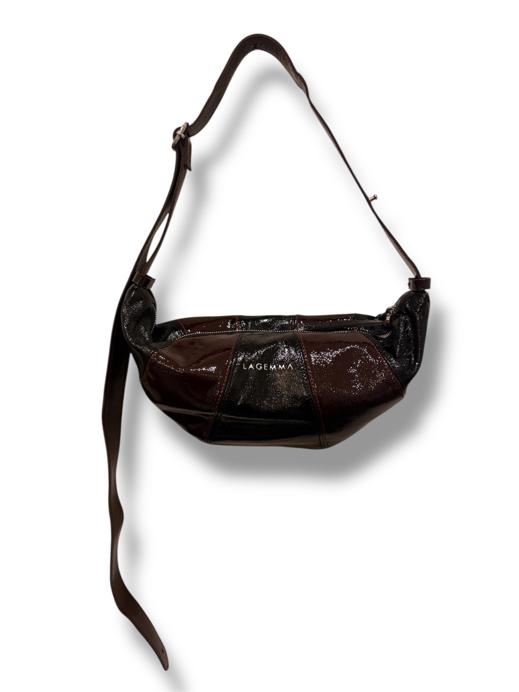 A croissant-shaped leather bag featuring a zipper closure and a small inner pocket. The adjustable strap allows you to wear it at different lengths. Perfect for a dynamic and edgy style. Each bag is meticulously handmade.
