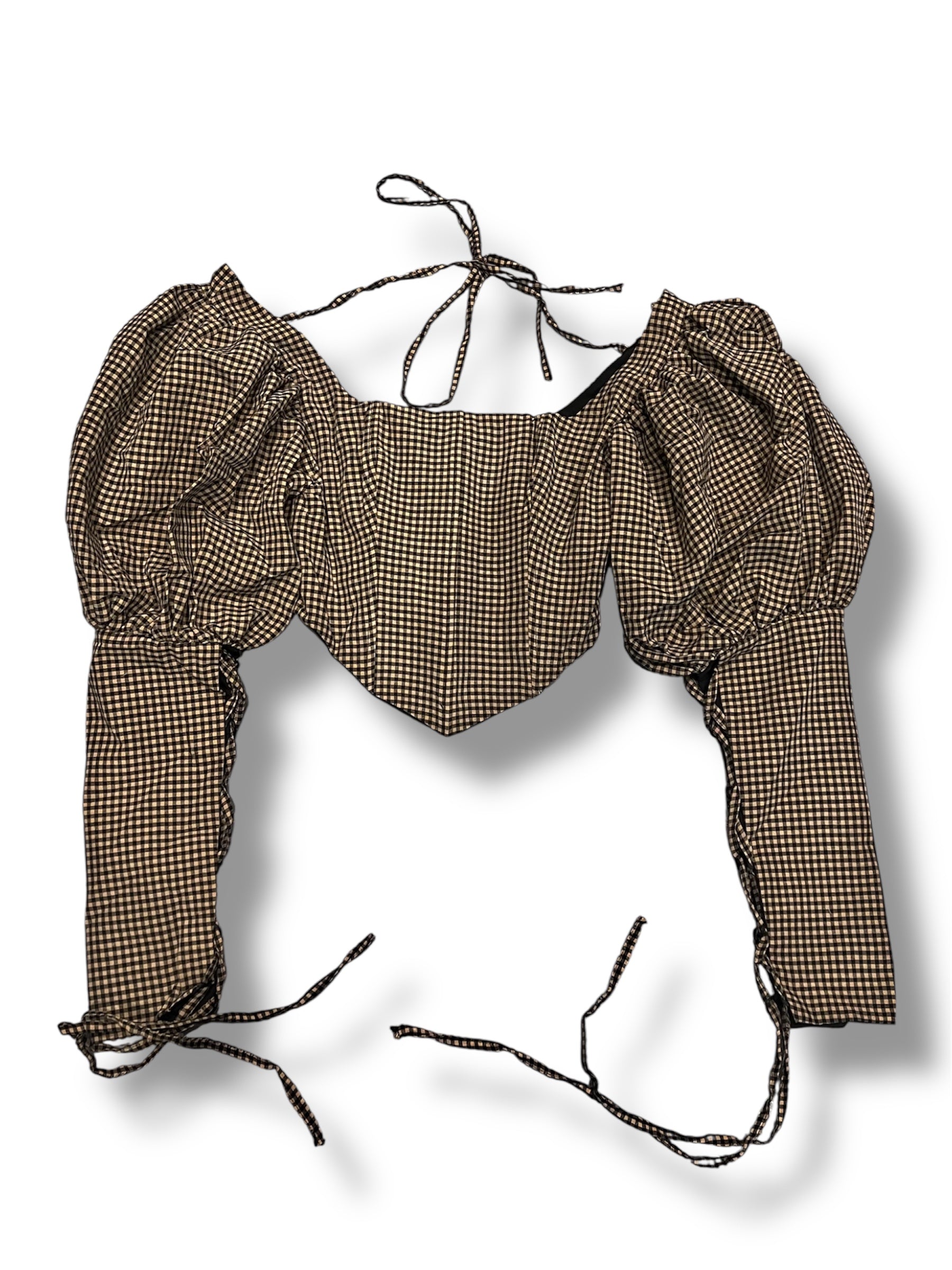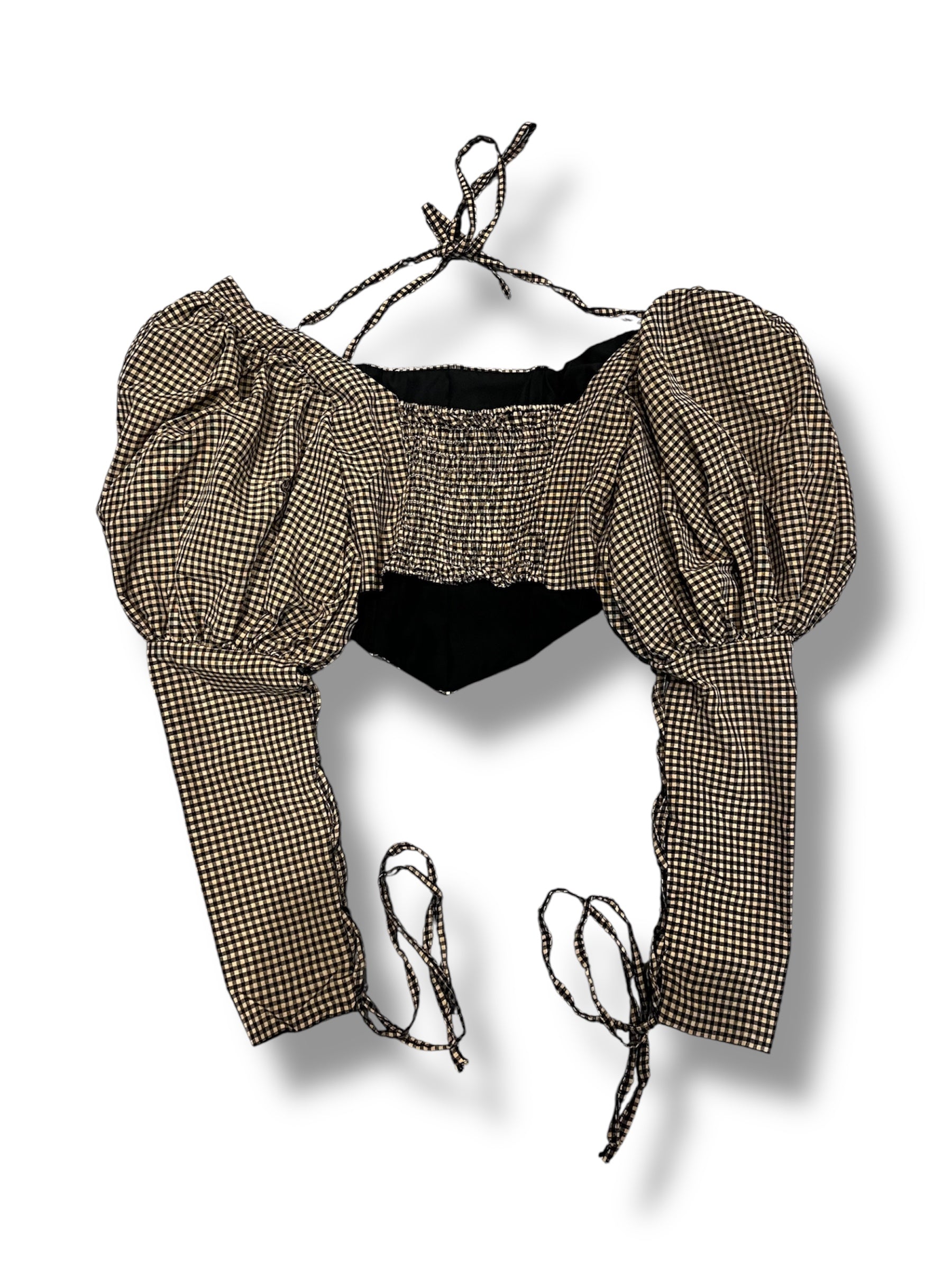 Details: Puff sleeves, side cut-outs, smocked back, lace-up sleeves, back tie