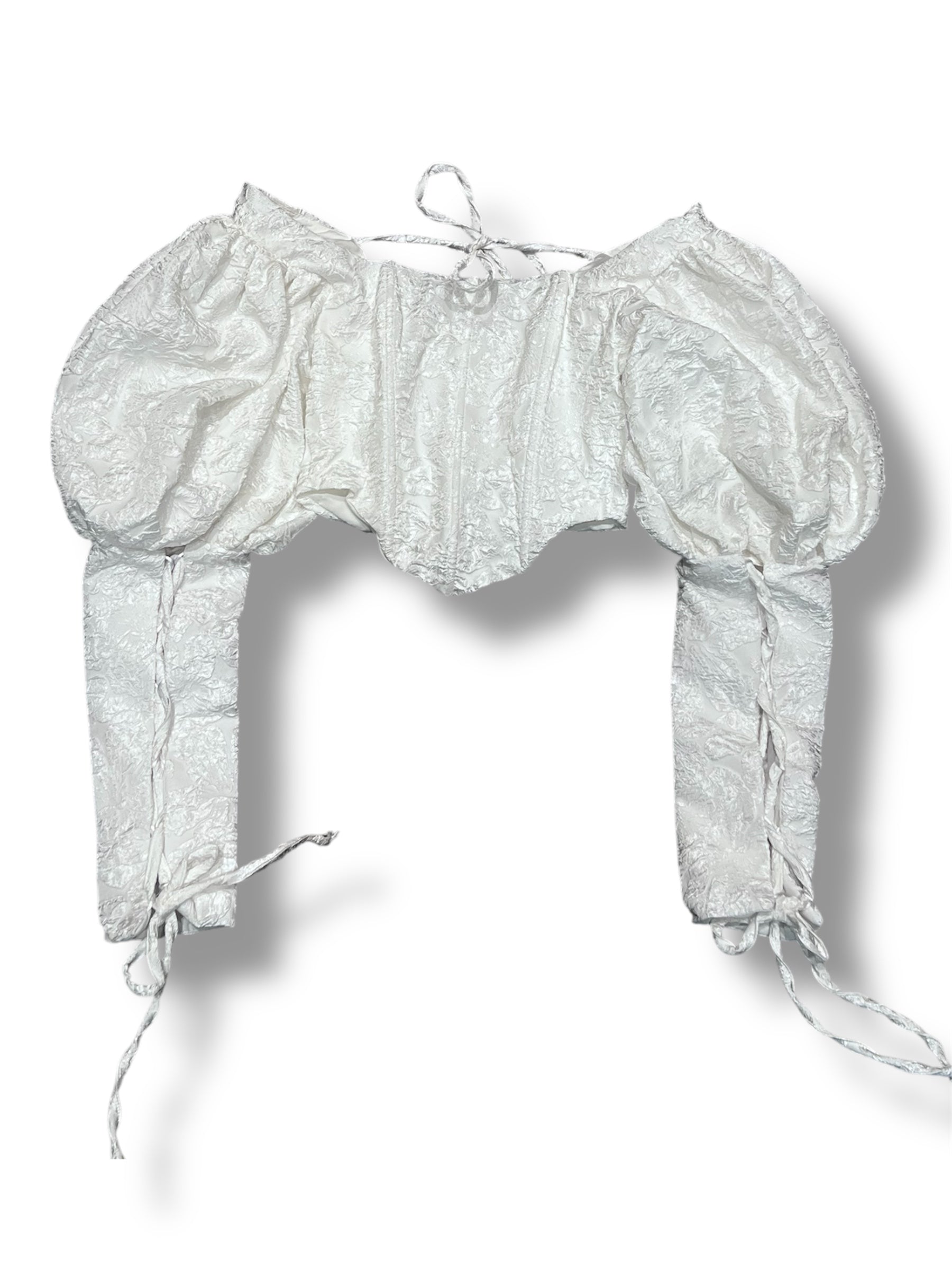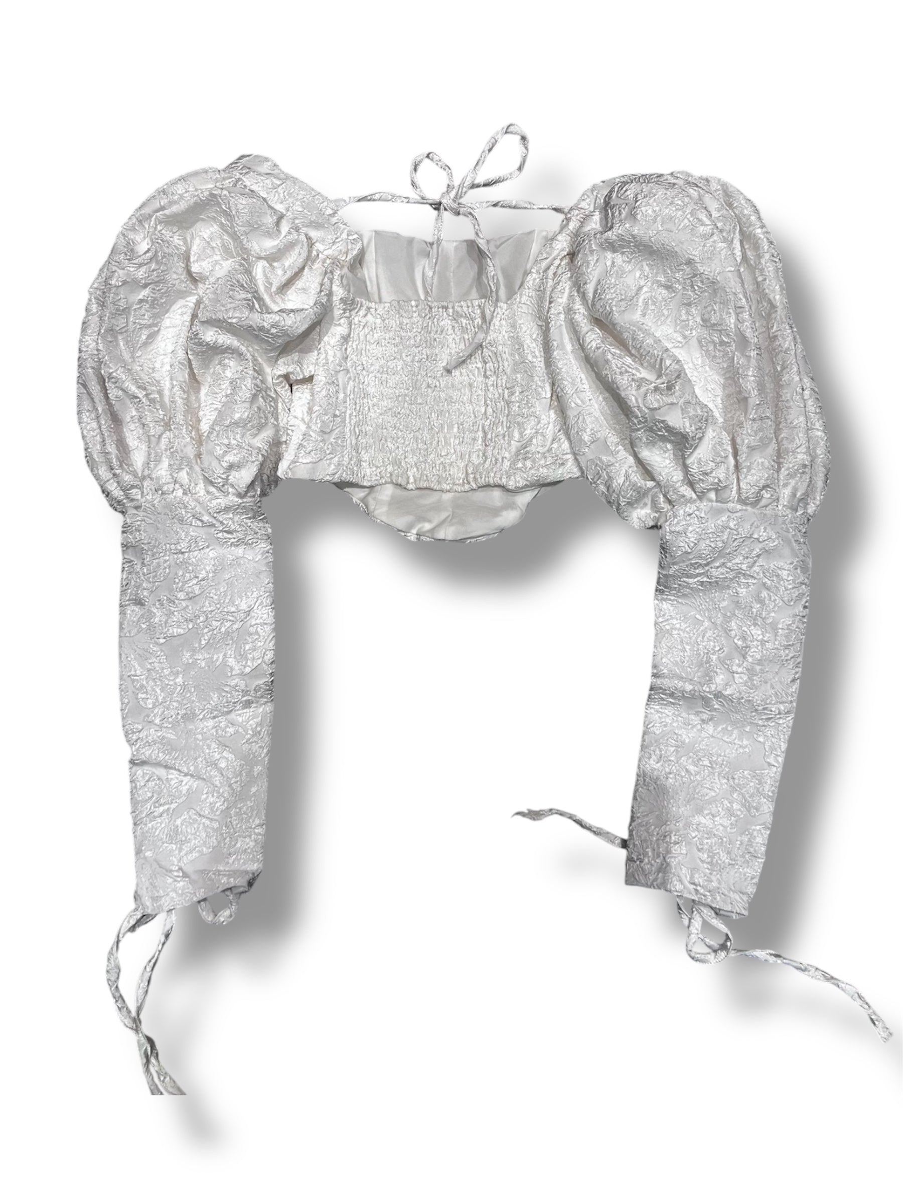 Details: Puff sleeves, side cut-outs, smocked back, lace-up sleeves, back tie